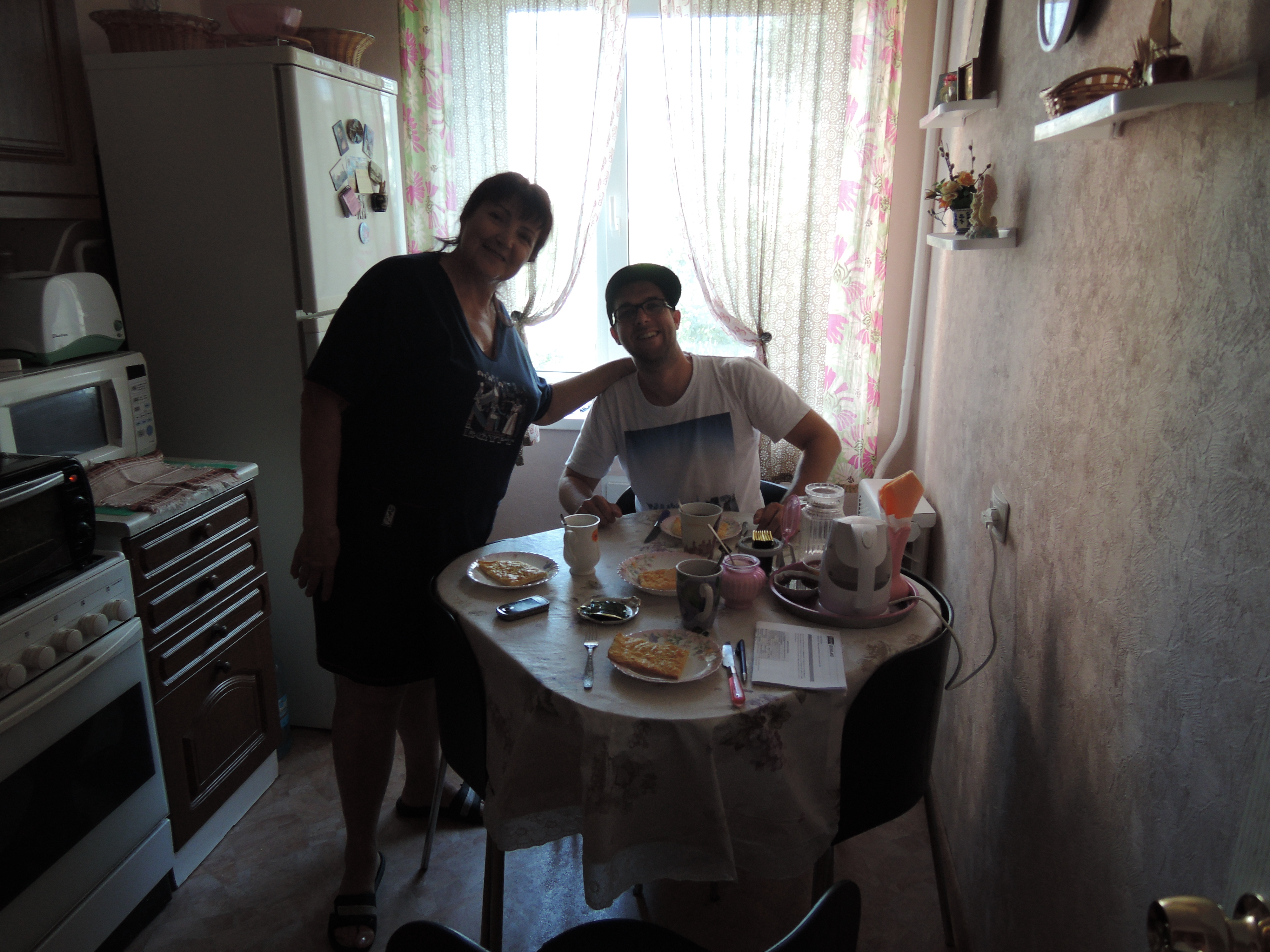 Auf dem Bahnsteig erwartet uns Anatoli, unser Reiseführer. Zwar ca. 15 Jahre älter als auf dem Foto von unserem Infoblatt, aber umso sympathischer. Mit seinem astreinen Englisch finden wir schnell heraus, dass Anatoli scheinbar einer der richtigen Self-Made-Man in Sibirien ist, der sich nach dem Zusammenbruch der Sowjetunion sein eigenes Business als Tourguide aufgebaut hat und sich darin mit Herz und Seele verschrieben hat. Auch wohnen wir in seinem eigenen Hostel, piick-sauber und gut ausgestattet und er wird uns auch auf die acht-stündige (ja, ich habe auch ziemlich blöde geschaut) Wanderung im Nationalpark begleiten.