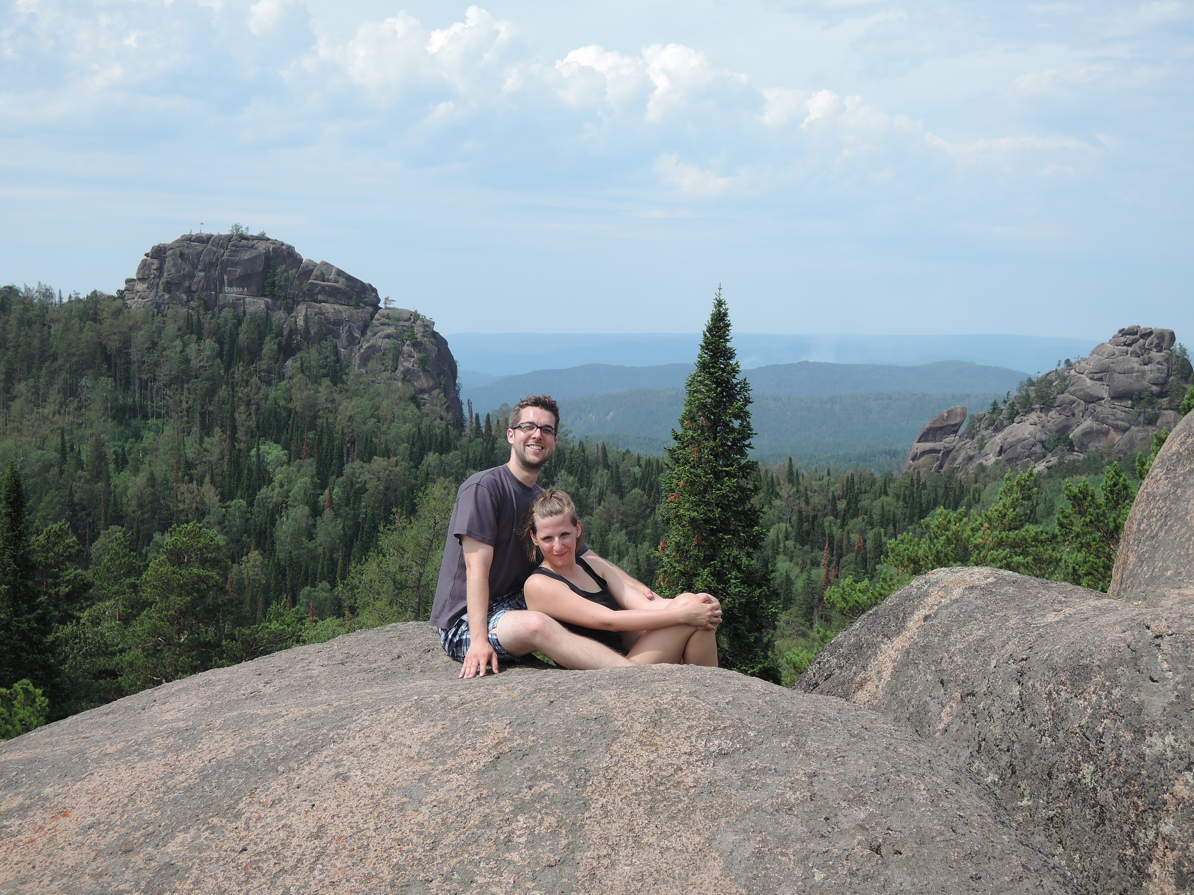 Soweit so gut, also los. Nachdem wir zwei Stunden durch eine Moskito-Wand gewandert sind (endloses Gefuchtel und Geklöne unsererseits inklusive), erklimmen wir etwa 1000 Treppen, bis einmal das Waldgebiet beginnt. Anatoli ist die Ruhe selbst, erträgt ohne Wimpern-zucken die Moskitos und die Hitze – True Tough Siberian halt – und erzählt uns Geschichten rund um das Leben in Russland.