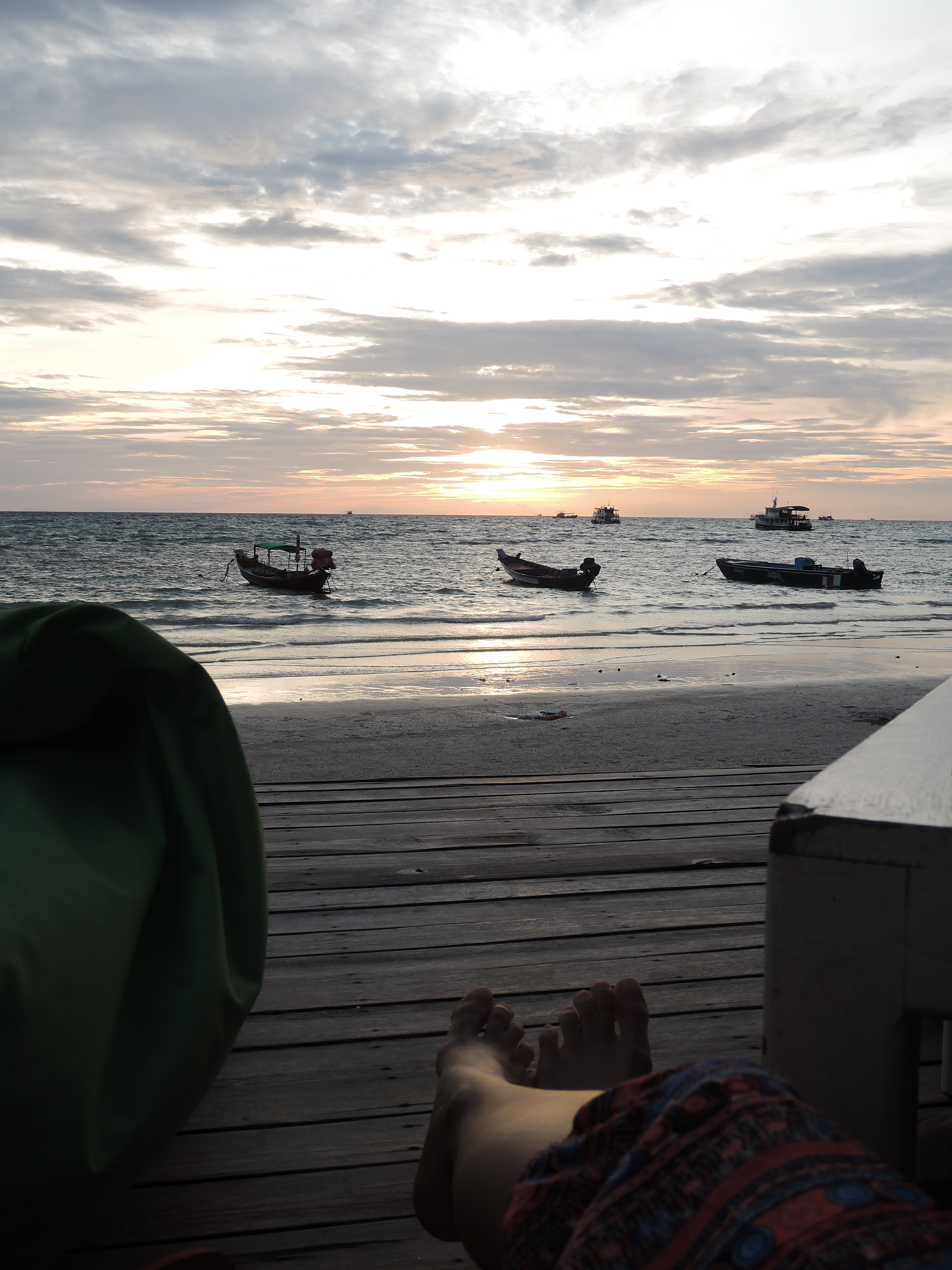 Der Transfer ging trotz ziemlich heftigem Wellengang gut und ohne grössere Übelkeit über die Bühne. Es war trotzdem beeindruckend zu sehen, dass auch Wellen, welche vermutlich zu den kleineren dieser Weltmeere gehören, ein Schiff so hin- und herwerfen können, dass man einmal nur Himmel und dann wieder nur Meer sieht. Als ca. nach der Hälfte der Fahrt die Leute auf Koh Pha Ngan ausstiegen, wussten wir, dass es die richtige Entscheidung war diese Insel auszulassen… XD