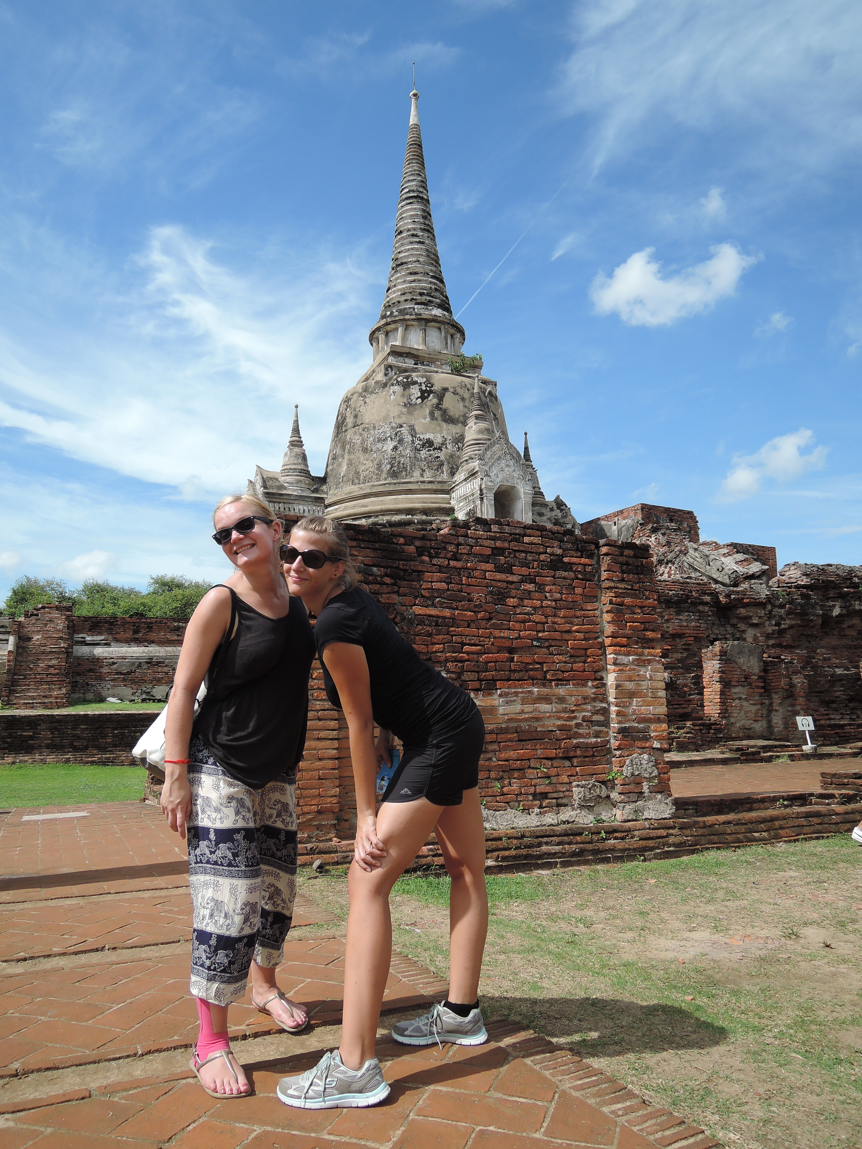 In Bangkok haben wir meine liebe Freundin Jo aufgegabelt, die bei EF auch den Fötzel eingereicht hat und sie ist mit uns gemeinsam in den Norden von Thailand gestartet. Mit dem lokalen Zug und Bus sind wir von Stadt zu Megakaff gereist, haben die Bauruinen in Ayuthaya besucht (ehemalige Hauptstadt von Siam) und haben eine supercoole, notabene 45 Kilometer lange Fahrradtour durch Sukkothai, DAS Tempelzentrum von Thailand, abgestrammpelt. Alles wieder mit superfreundlichen Thais, quasi keine Touristen und glücklicherweise fast kein Regen, trotz Regenzeit.