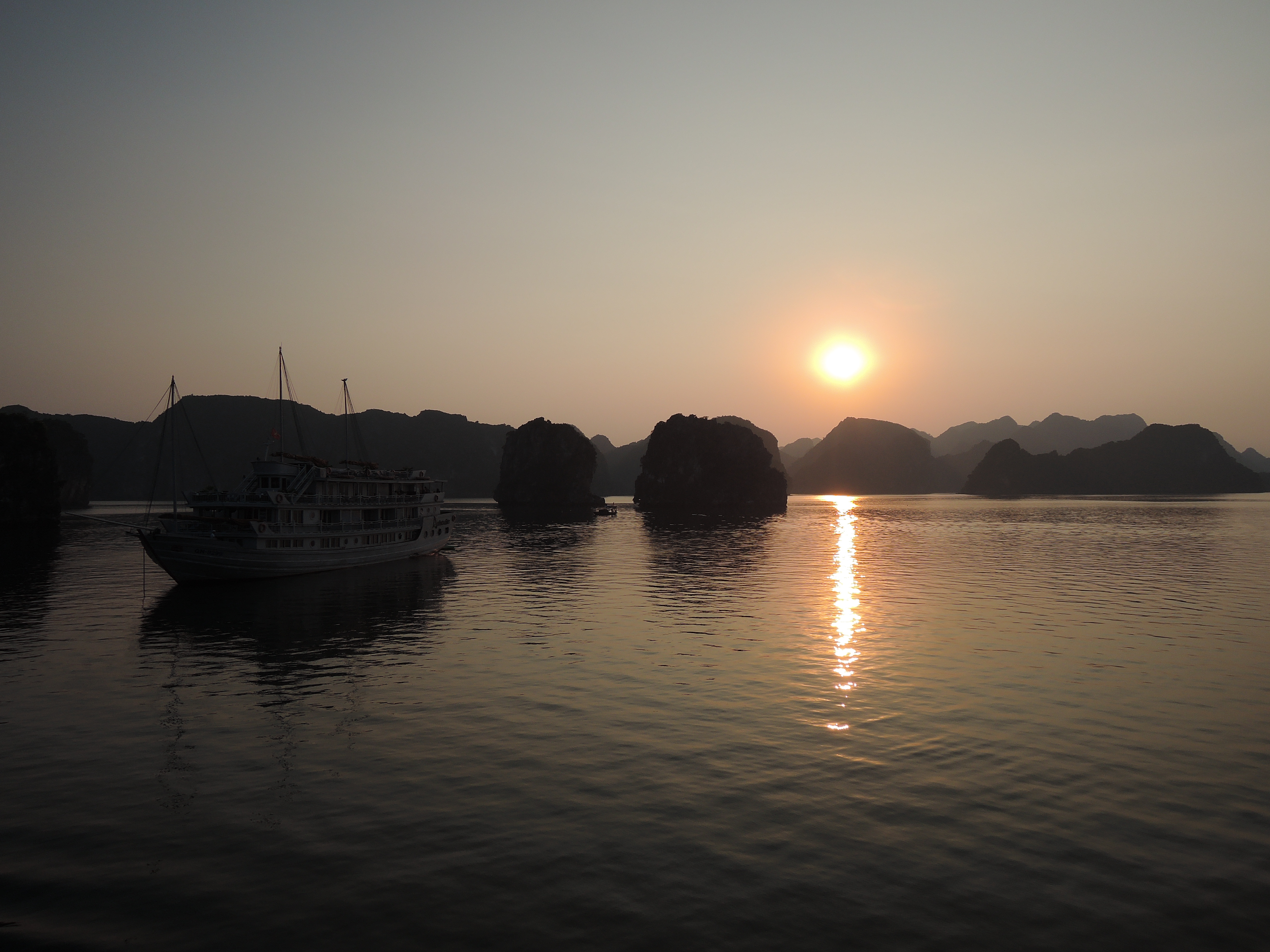 Eines der wenigen Must-Sees unserer Reise mussten wir natürlich abhaken, die Halong-Bucht. Eines der sieben Natur-Wunder durften wir nicht vorbeiziehen lassen und haben uns eine ultra-fancy drei-tägige Cruise auf einem hübschen Schiffli gegönnt, samt „onlyseafood-overkill“, wir haben noch nie so viel gegessen 🙂 Schön wars sicher, nach zwei Tagen ist dann aber auch mal gut mit ultra-kitsch-mega-romantisch Sonnenuntergang 🙂