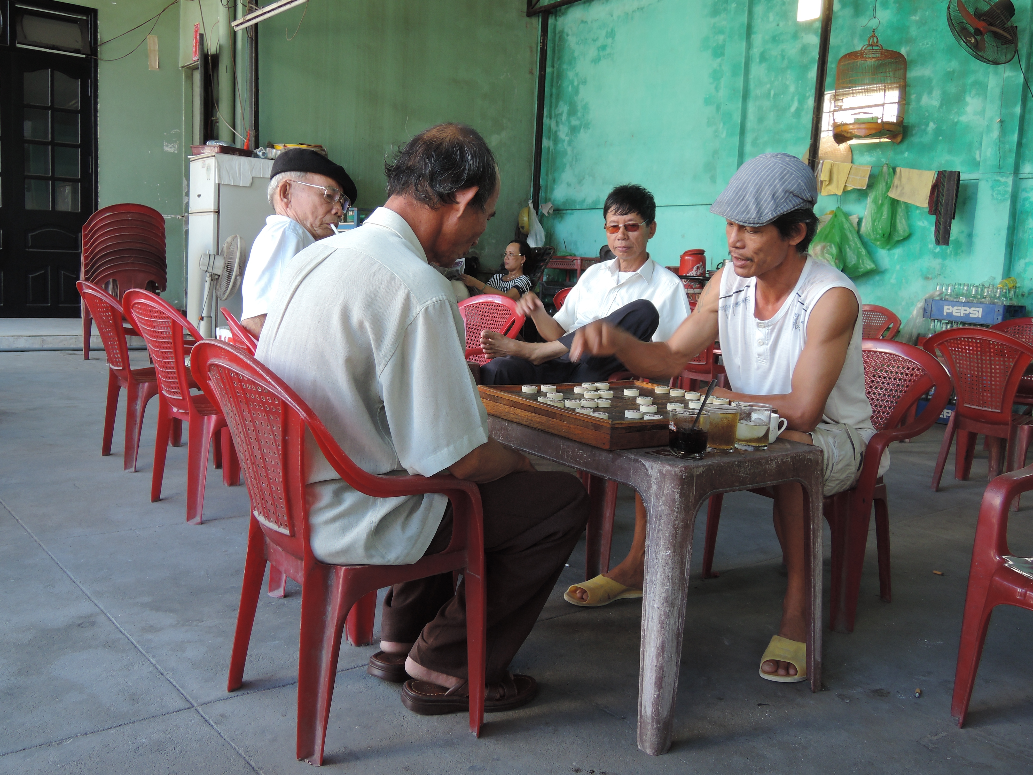 Also schöner Kontrast dazu, steht die freundliche, sehr offene und vor allem sehr junge Bevölkerung. Über zwei Drittel der Vietnamesen (ca. 72 Millionen) sind unter 30, die Hälfte davon sogar unter 15 Jahren! Wir glauben, überall nur junge Mütter mit quietschenden, super süssen Babies zu sehen, Schulkinder die von jungen Eltern abgeholt werden und vereinzelte ultra-runzlige, im Lotus-Sitz höckelnde 90-jährige mit zahnlosem Lächeln, die man am liebsten umarmen würde. Diese Menschen prägen das Stadtbild enorm und lassen alles sehr dynamisch wirken. Nirgendwo sonst kamen wir bisher mit so vielen Locals in Kontakt. Es scheint, den jungen Menschen dürstet es nach Umbruch, auch die ärmsten Familien versuchen ihre Kinder in die Universitäten zu schicken. Der Knüller waren drei super-scheue Studenten, die uns fragten, ob sie sich ein bisschen mit uns unterhalten dürfen – um ihr Englisch zu verbessern 🙂 Die Vietnamesen sind erstaunlich offen und wir hatten Abend lange Unterhaltungen, wo sie uns Einblick in ihr Leben und das neue, aber scheinbar noch sehr verbesserungswürdige Vietnam gaben.