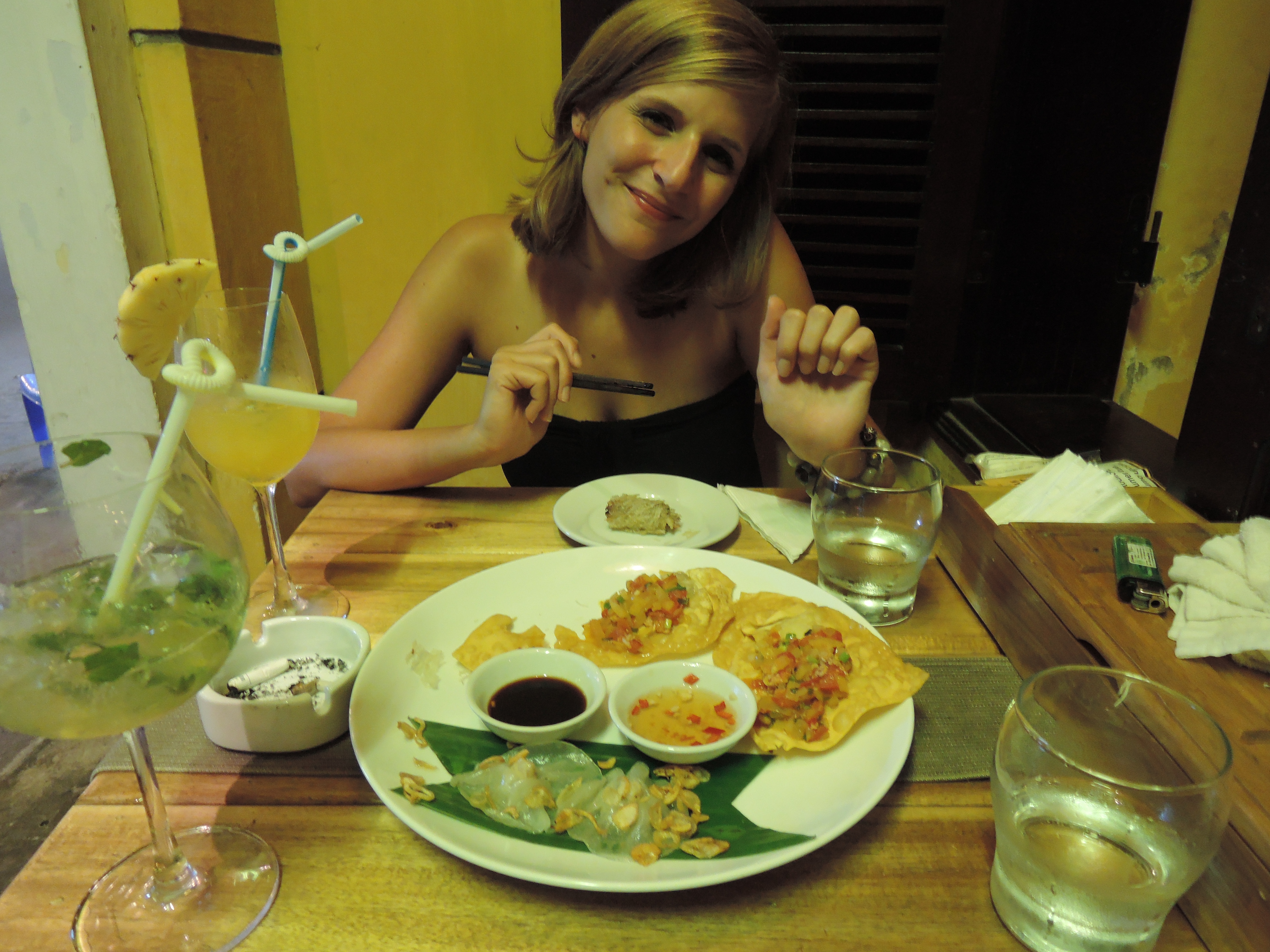 Mit dem „Sleeping- Bus“ und einem gratis-klaustrophobischen Anfall dazu geht es weiter nach Hoi An, einer ultrasüssen kleinen Stadt in der Nähe von Da Nang, weiter südlich in Vietnam. Wir konnten stundenlang mit unseren Schotter-Schrott-Velos (Bremse – sorry, no have…) durch die Stadt tingeln und die Szenerie beobachten. Super lecker essen kann man dort übrigens auch. Die Vietnamesische Küche ist meilenweit von der Schärfe und Gewürzvielfalt von Thailändischem Essen entfernt, aber durchaus abwechslungsreich 🙂