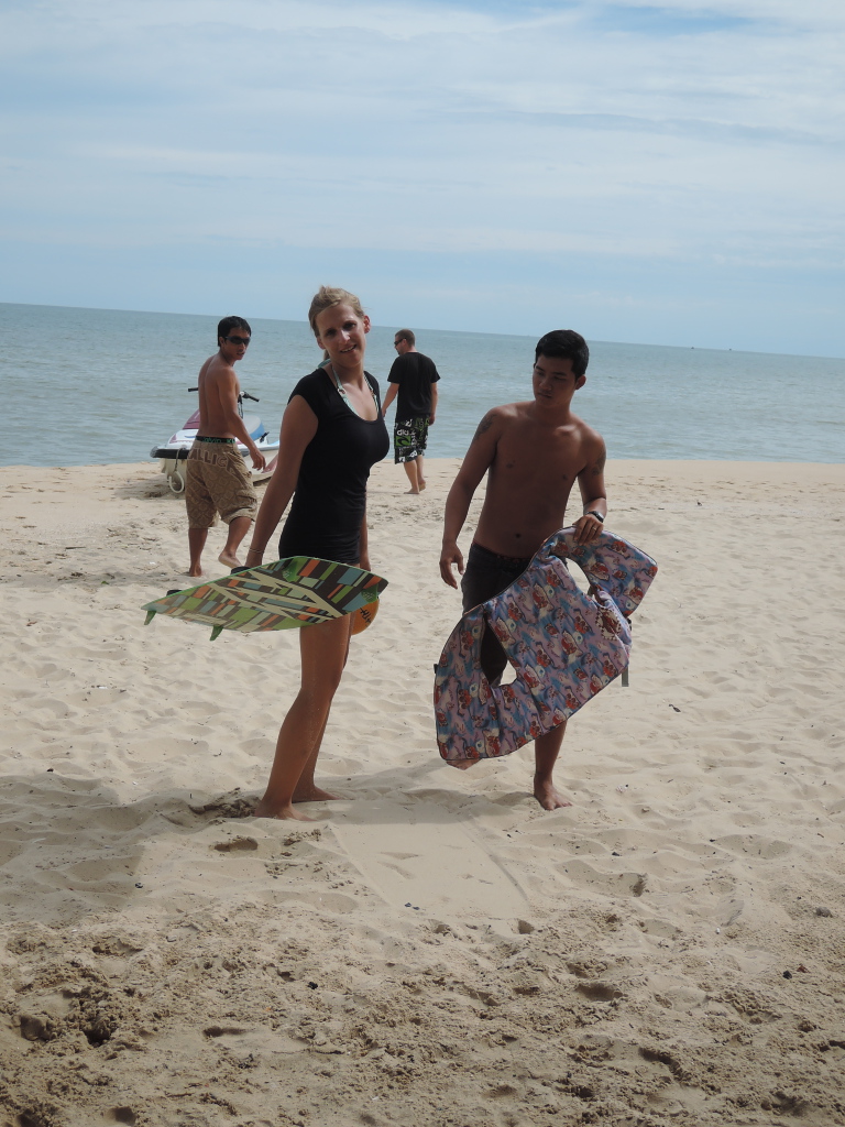 Nach einer weiteren „spassigen“ Nacht im Zug, diesmal aber mit einem witzigen israelischen schwulen Pärchen, kommen wir an in Mui Ne. Das touristische Dörfchen am Strand ist auf zwei Dinge konzentriert: Russische Touristen und Kite Surfing. Für letzteres sind auch wir dorthin gekommen. Nach langem Quengeln meinerseits hat sich Beat dazu bereit erklärt, sich mit mir in den Wind zu stellen und versuchen, nicht zu ersaufen beim ersten Kite-Versuch…:) Naja, ersoffen sind wir nicht, aber das liegt nicht an unseren Kiting-Können – der Wind war schlicht und einfach nicht da…. unser ultra-gechillter Kite-Lehrer Oli aus Deutschland nahm’s locker, wie scheinbar alles in seinem Leben seit 9 Jahren als Instruktor. „Erst mal eine Rauchen“ – war das Motto. Trotzdem haben wir es ein, zwei Mal aufs Wasser geschafft und Oli hat uns mitgenommen auf seine abendlichen Fressabenteuer in der „Ziege“ und dem „Krokodil“ (gar nicht erst fragen….) und hat uns die Kiter-Comunity in Mui Ne vorgestellt.