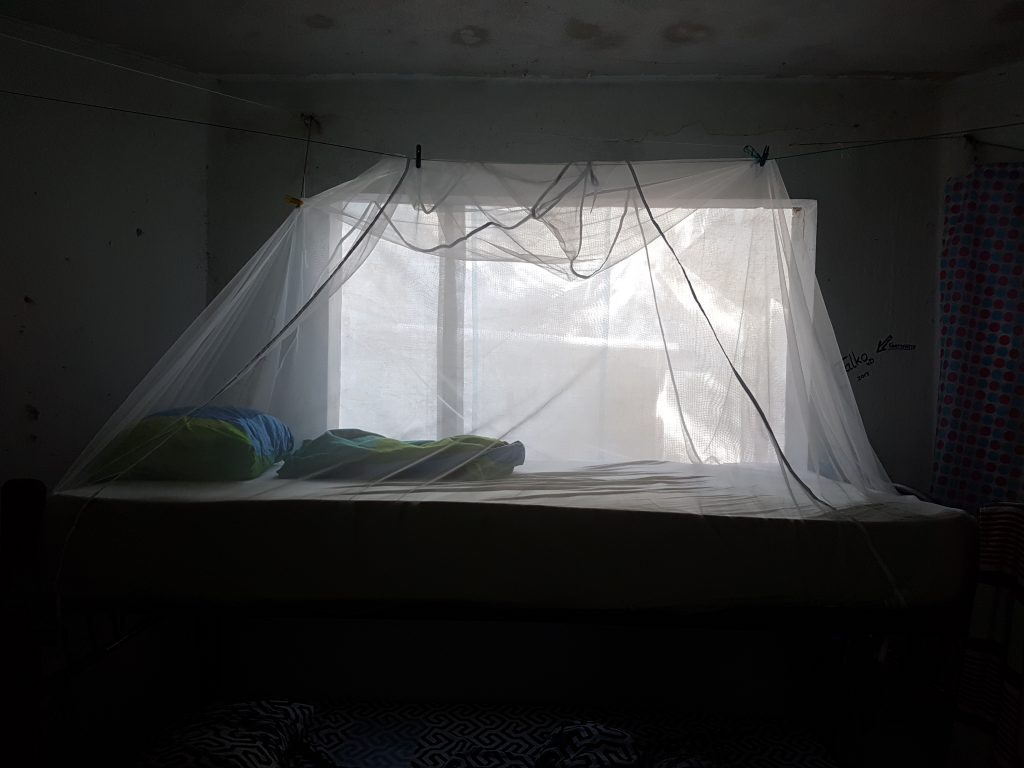 Unsere 4 “Huts” waren arg in die Jahre gekommene kleine Betonhäuschen, mit 6 Etagenbetten und Matratzen, die älter waren als ich – das tropische Klima hat deren “Graufärbung” den Rest gegeben… Naja, ok, mit dem hatte ich ja gerechnet.. Also schnell mein Moskitonetz drüber gespannt und gehofft, dass ich nicht aus Versehen einen Skorpion oder sonstiges Gefleuch darin einklemme.