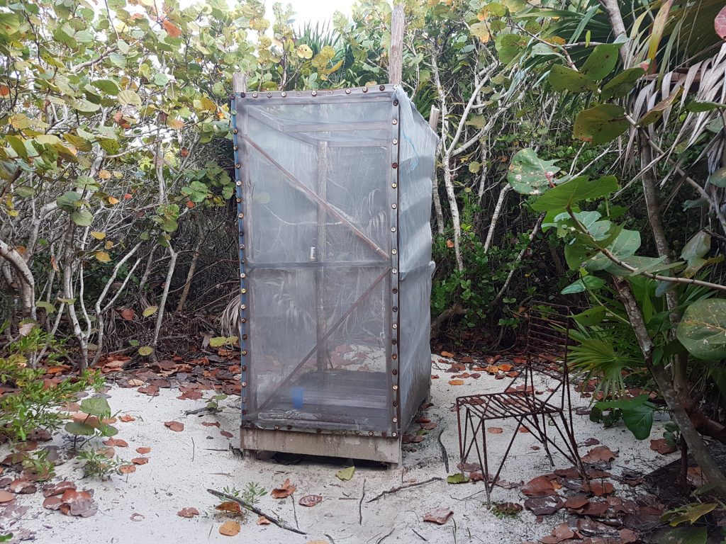 Auf dem Weg zurück zur Basis surrt und summt es aus jeder Ecke (kein Wunder bei gefühlten 100 Moskitos pro cm3), mit jedem Schritt scheint ein Muschelkrebs aus dem Weg zu krabbeln oder eine Fledermaus just einen Zentimeter vor meinem Gesicht die Biege zu machen. Das alles ist ja noch ok – solange es Tageslicht hat. Ab ca. 19:00 ist es nämlich dunkel – also so richtig pechschwarz und nur dank meiner super Stirnlampe (danke mein Schatz 🙂 kann ich mich von A nach B bewegen. Blöd wie ich bin wollte ich wissen, was da denn überall so schön glitzert im Gebüsch – ich hätte gerne auf die Info verzichtet, dass es die Augen der Spinnen und sonstigen Viecher sind, die in der Dunkelheit das Licht der Lampe reflektieren…Noooooot! Man kann sich vorstellen, dass wenn man sich einmal in sein Bettli ins Moskitonetz gehüllt hat, es schon ziemlich dringend sein muss bevor man sich wieder rausbewegt – da ja sowieso nur ein ansprechendes “Loch im Boden-WC” auf einen wartet, aber lassen wir das mal… So naiv es klingt, aber ich bin wie die Meisten einfach ans “Licht-anknipsen” gewohnt – in Pez Maya ist mir erst einmal richtig aufgefallen, an wie vielen Orten man Elektrizität braucht – was es nicht hat auf der Basis ausser in der Küche. Auch fehlendes fliessendes Wasser ist so eine Sache, Hände waschen habe ich wohl am Meisten vermisst. Zum Duschen hat man sein Kübeli im Basis-eigenen Regenbrunnen rausgefischt – mit demselben Prinzip und in gemeinschaftlicher Meisterleistung wurde auch der 100 Litertank auf dem Dach gefüllt, um “fliessend” Wasser in der Küche zu haben. Gekocht haben wir jeweils selbst für die ganze Gruppe – was hiess Gemüse mit Reis, Bohnen oder Soja. Oder in einer anderen Reihenfolge, aber im Prinzip waren es Kohlenhydrate gemischt mit Kohlenhydraten und..ach ja.. Kohlenhydrate. – ist halt so wenn man keinen Kühlschrank hat..