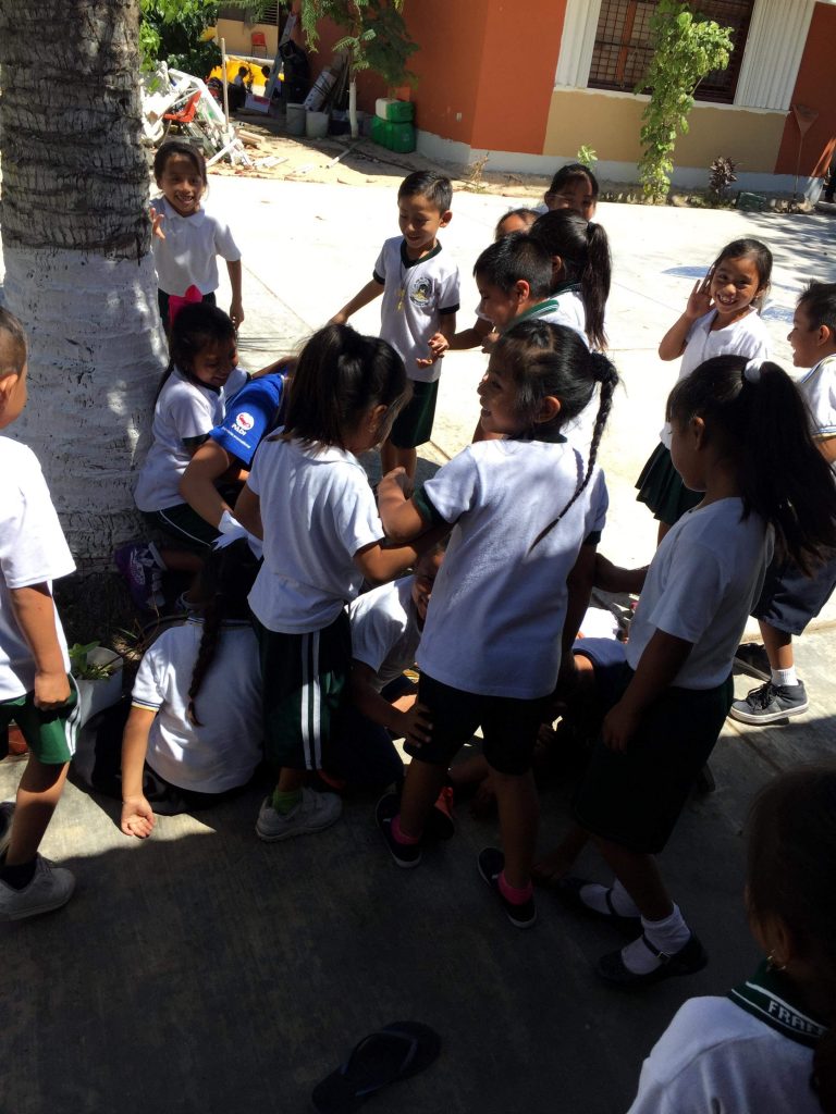 Weiiiiit aus dem Fenster habe ich mich gelehnt, als ich mich fürs Community Projekt eingeschrieben habe… Wir haben jeweils einen Tag mit Schülern der 1. Bis 3. Klasse verbracht und auf Spanisch versucht, den Kids etwas über Umweltschutz beizubringen und mit ihnen Meerestiere zu malen. Wow…das war wohl der strengste Tag in ganz Pez Maya….:-) Zusätzlich kann ich den Itzy-Bity-Spinnen-Song jetzt auf Spanisch singen, das ist doch mal was.